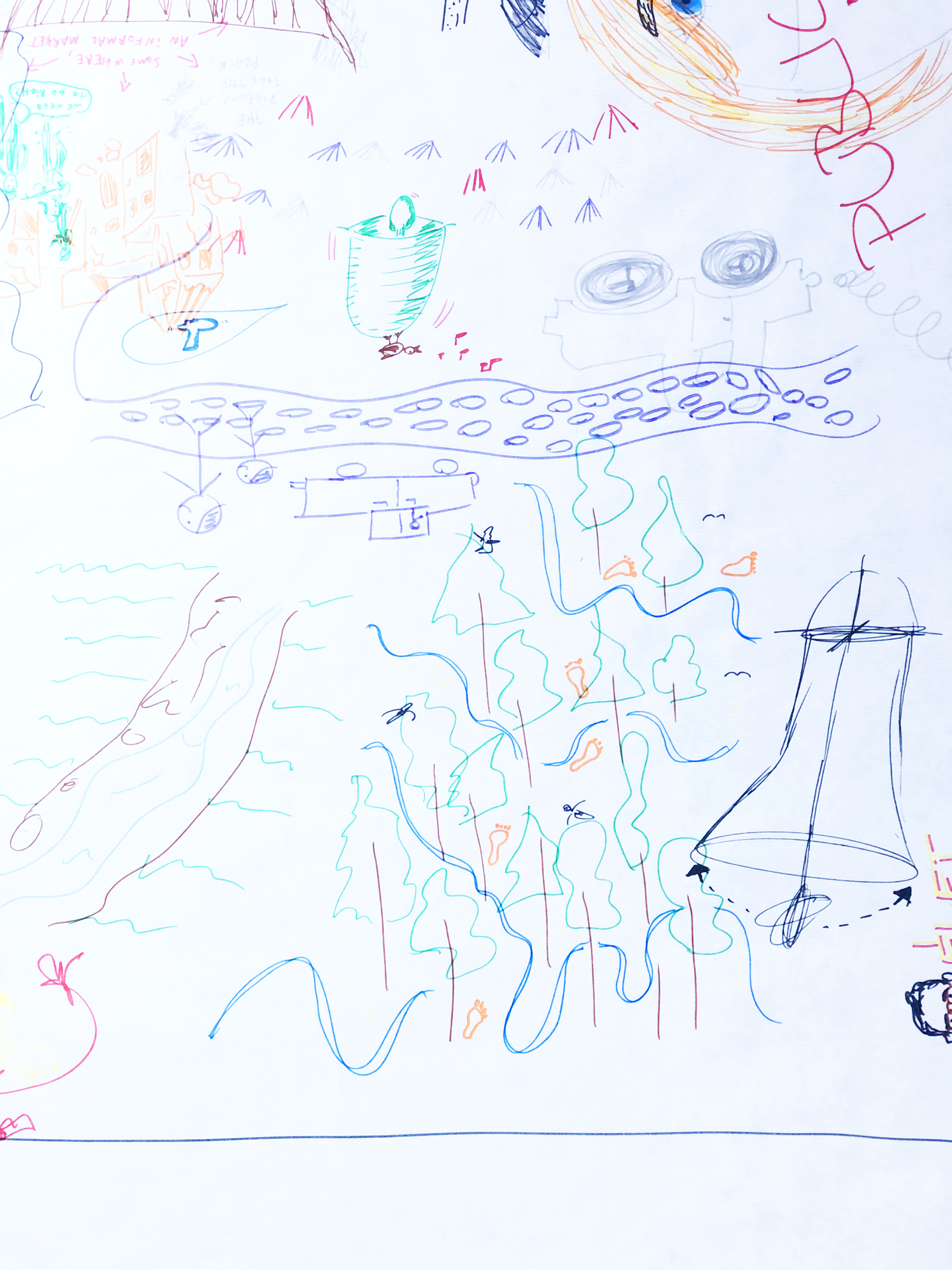 Details of the visual cartographies drawn by the exhibition visitors from the sound map we created while walking on the bird migratory lines.
